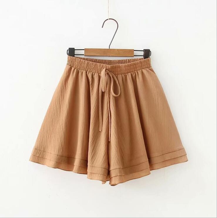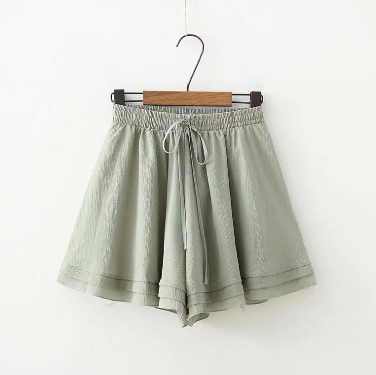Main fabric composition: Polyester fiber (polyester)Content of main fabric ingredients: 71% -80%Style: freshStyle: Wide-leg pantsPants type: Wide tube typePants length: shortsWaist type: high waist Is there a belt: no beltThickness: Thin sectionColor: white, khaki, gray, green, blacksize: one siz......