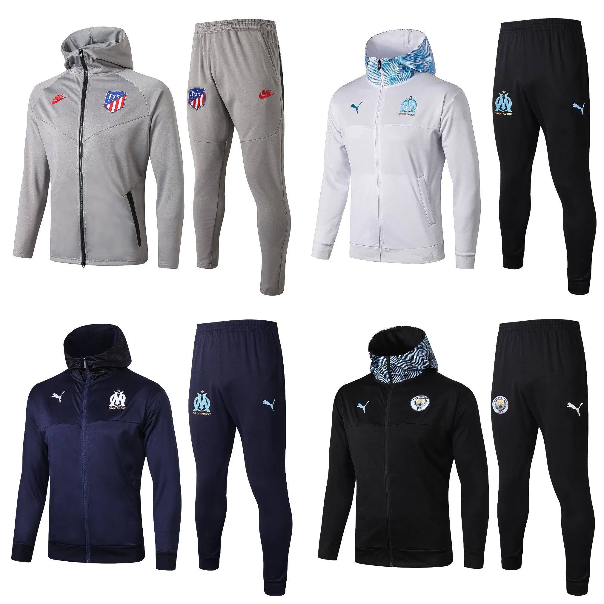 • Wholesale Atletico Madrid/ Marseille /Mancheste. R City FC Hooded Jacket Sweatshirts Tracksuit Men Women Youth Soccer Training SuitsWholesale Atletico Madrid/ Marseille /Mancheste. R City FC Hooded Jacket Sweatshirts Tracksuit Men Women Youth Soccer Training Suits