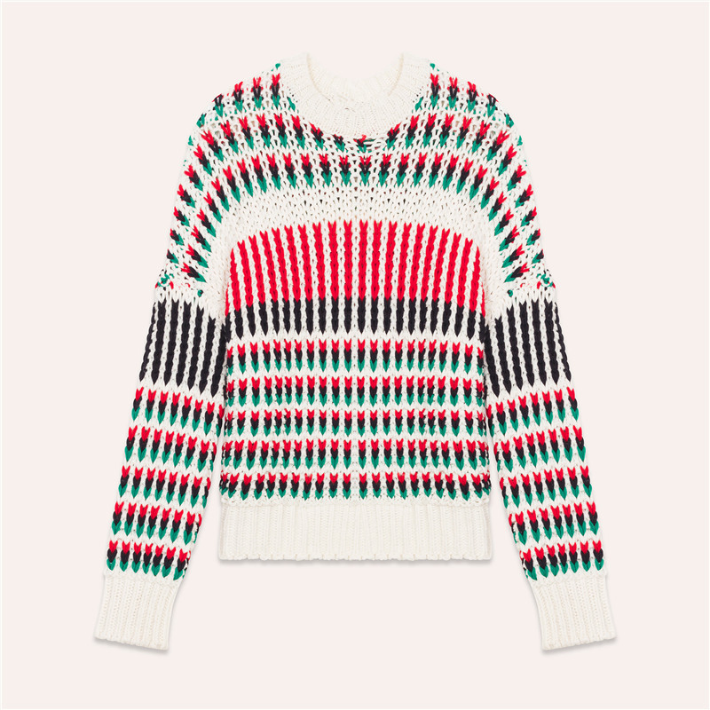 100% Cashmere Women Sweater Crew Neck Sweater Striped Sweater