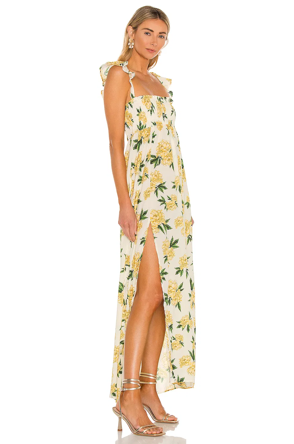 2022 fashion Smocked bust with elastic flutter sleeves floral longline dress