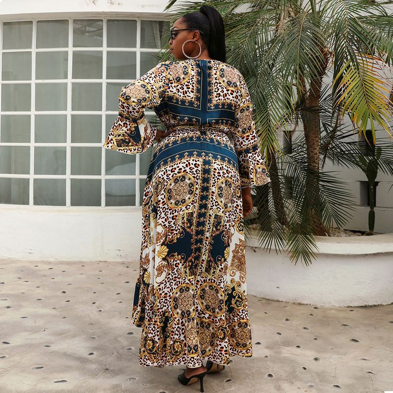 Shangyan Womens Spring and Summer New out V-Neck Bat Sleeve Printed Dress