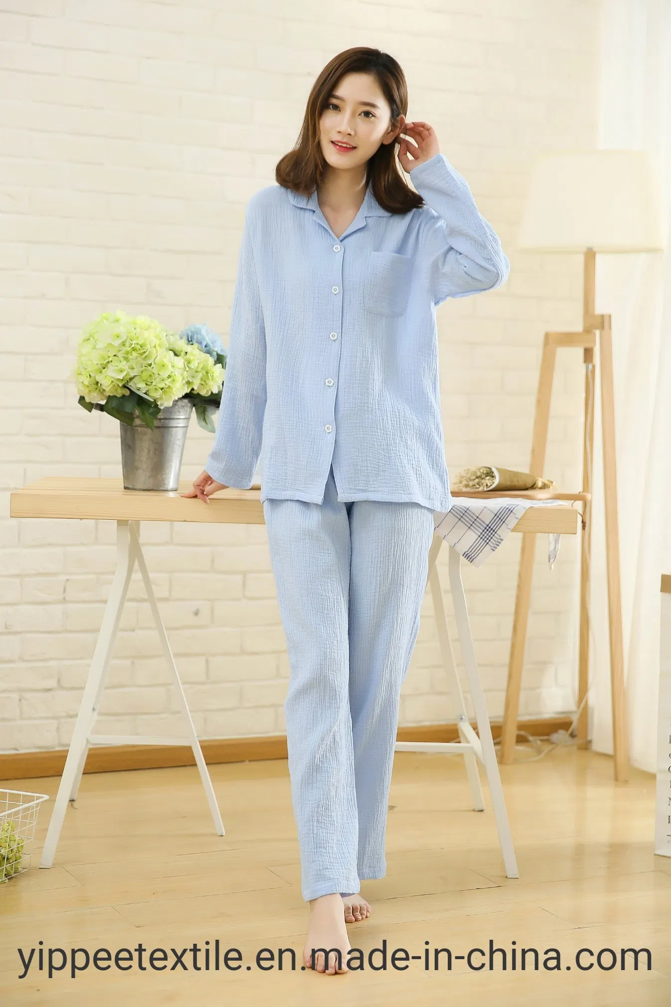 ITEMWOMEN LOUNGEWEAR,SLEEPWEAR,PAJAMAS,NIGHTWEARMATERIAL100% COTTON CRINKLE MUSLIN FABRIC(DOUBLE LAYERS)PLAIN COLORQUALITYPRE WATER WASHED, BREATHABLE,SOFT,LIGHTSIZES M L XL XXL XXXL ETC COLORLIGHT BLUE, PINK,GRAY,PEACHMOQ100PCSSIZE:SIZEBODY LENGTHCHESTSHOULDERSLEEVEM67983954L681044055XL701104256 SI......