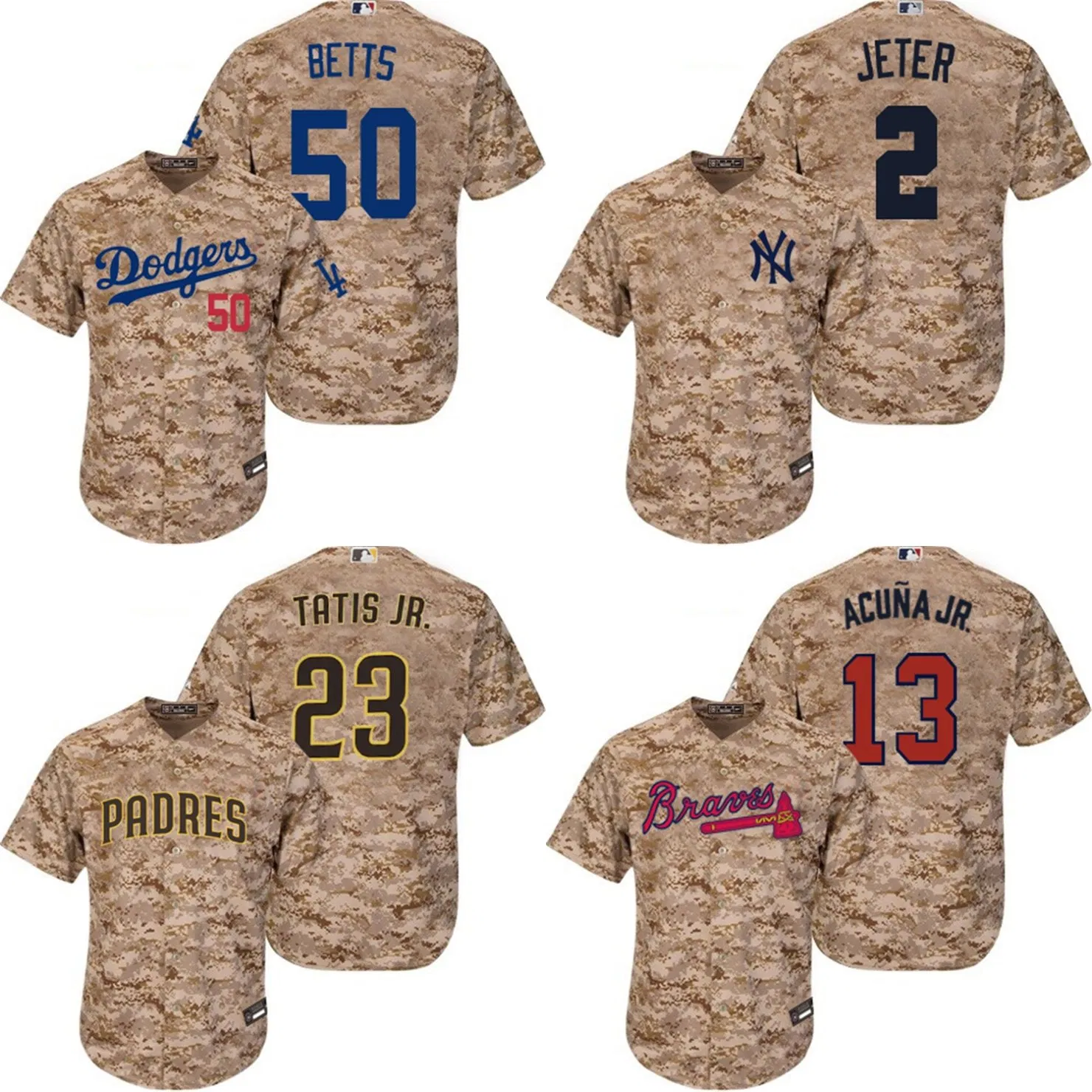 2021 New Camo Mlbi Dodgers Yankees Bravers Padres Authentic Custom Patch Jerseys