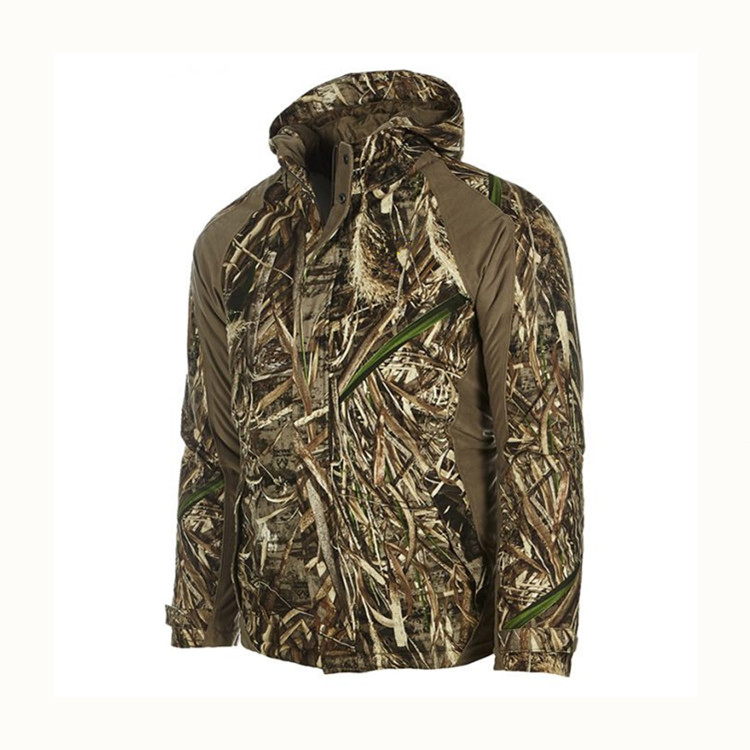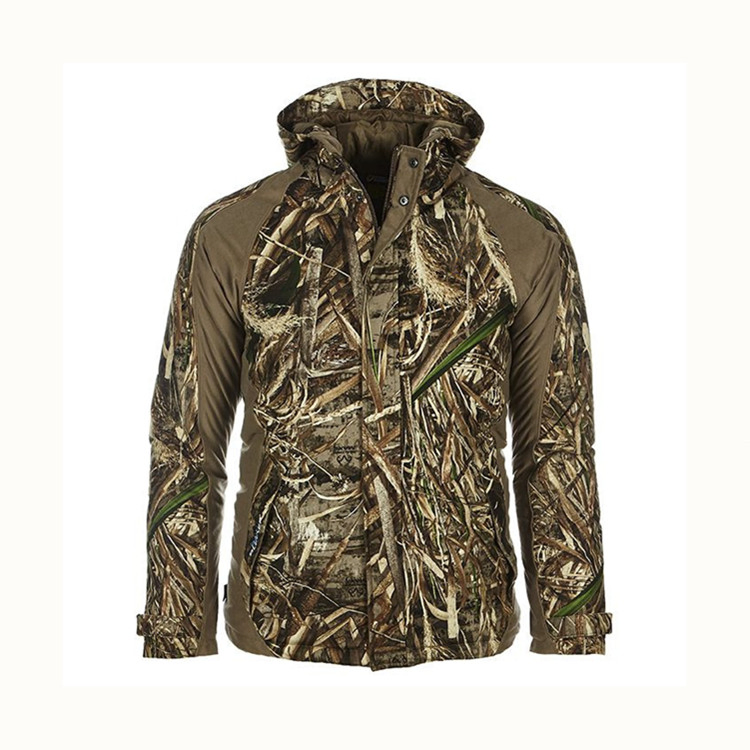 Hunting Jacket On Sale is designed and fabricated with camouflage style for perfect concealment for duck hunting sports. The fabric of Hunting Jacket On Sale is 100% polyester twill peach with TPU lamination 10,000mm/m2, 10,000g/m2/24hours bonded tricot. All the seams are taped to keep the hunter dry and warm when shooting the duck even in cold environment. The Hunting Jacket On Sale is waterproof and breathable that can enable you a comfortable feeling in hunting games.