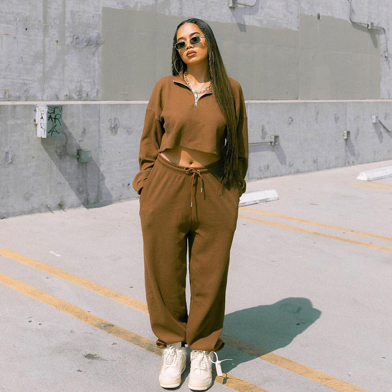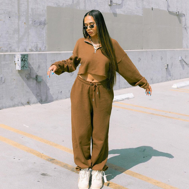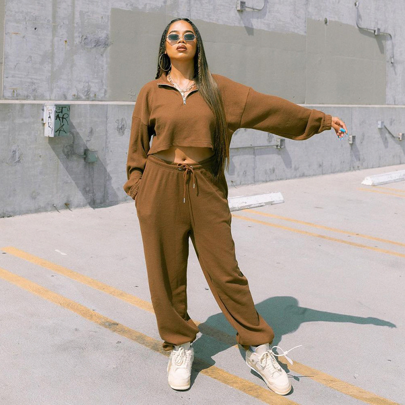 | Product name: | New Trendy Casual Crop Top Solid Color Zipper Pleated Women Tracksuit Fall |