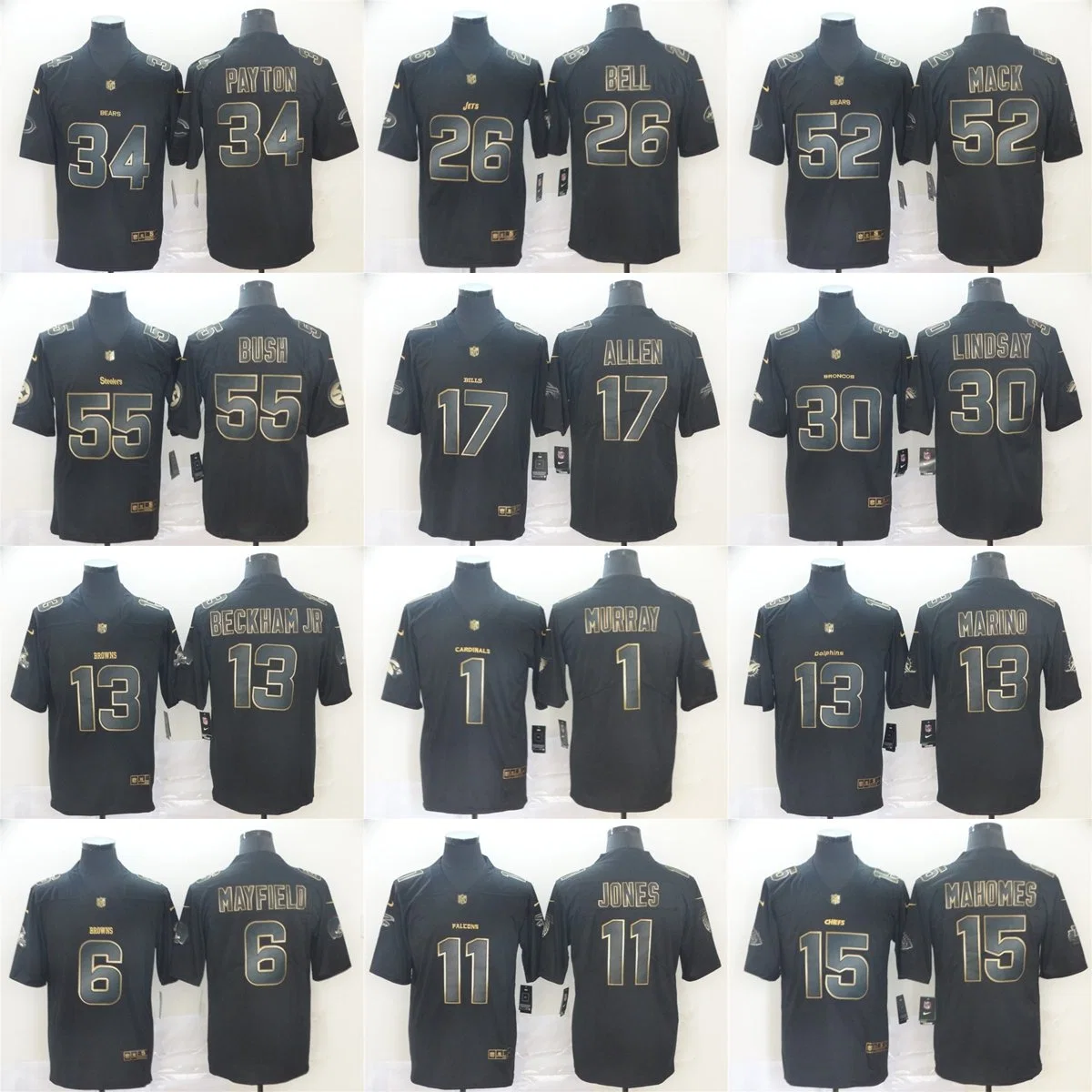 Wholesale Black Golden Jones Allen Beckham Lindsay Putian Football Jerseys