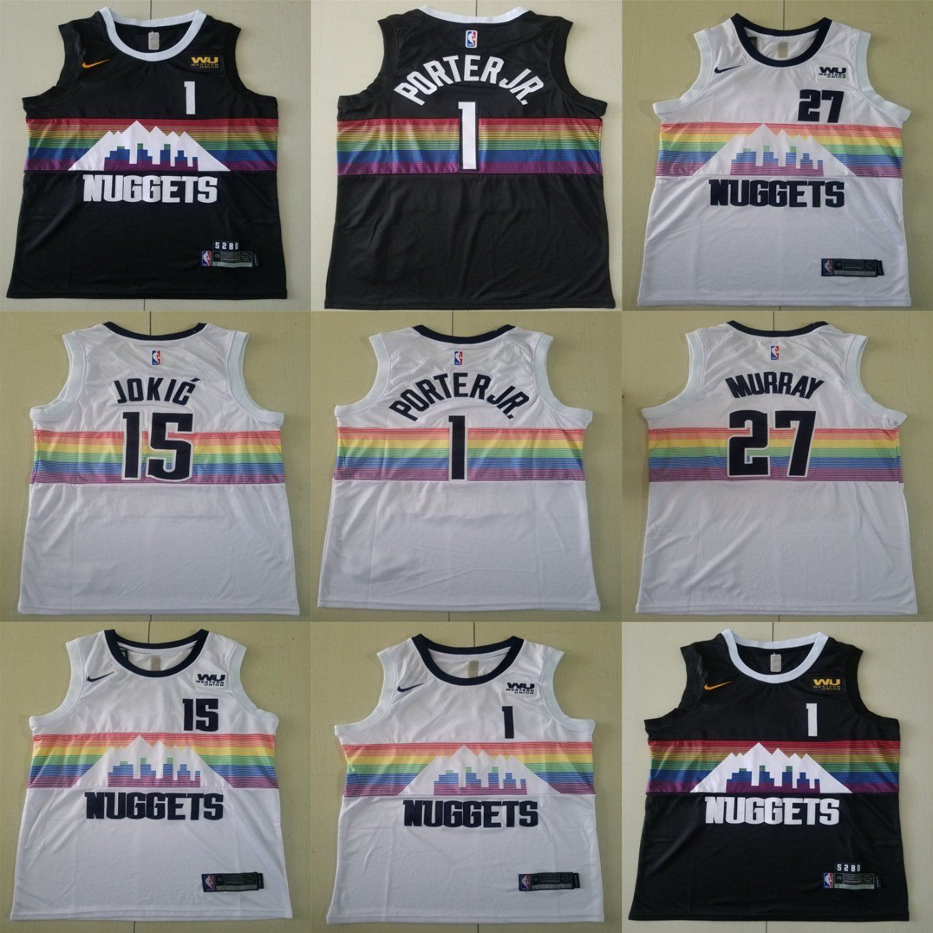 Wholesale Denver Murray 27 Nuggets Jokic15 Porter Jr. 1 Black White City Basketball Jerseys