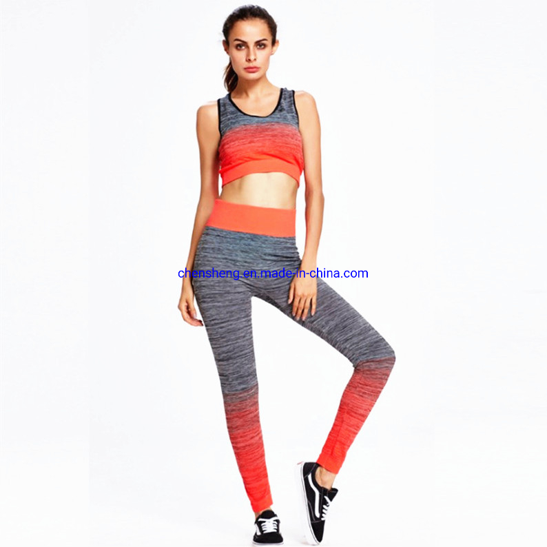 Women Summer Sports Gym Active Wear Seamless Sexy Ombre Stripes Fitness Yoga Wear Product NameWomen's 2 piece suit sportswear active wear fitness yoga wearMaterialpolyester+spandexSizefree sizeColorblack,orange,plum,yellow,blue,greenWeighttop bra+legging:250g/set,tank top+legging:280g,short slee......
