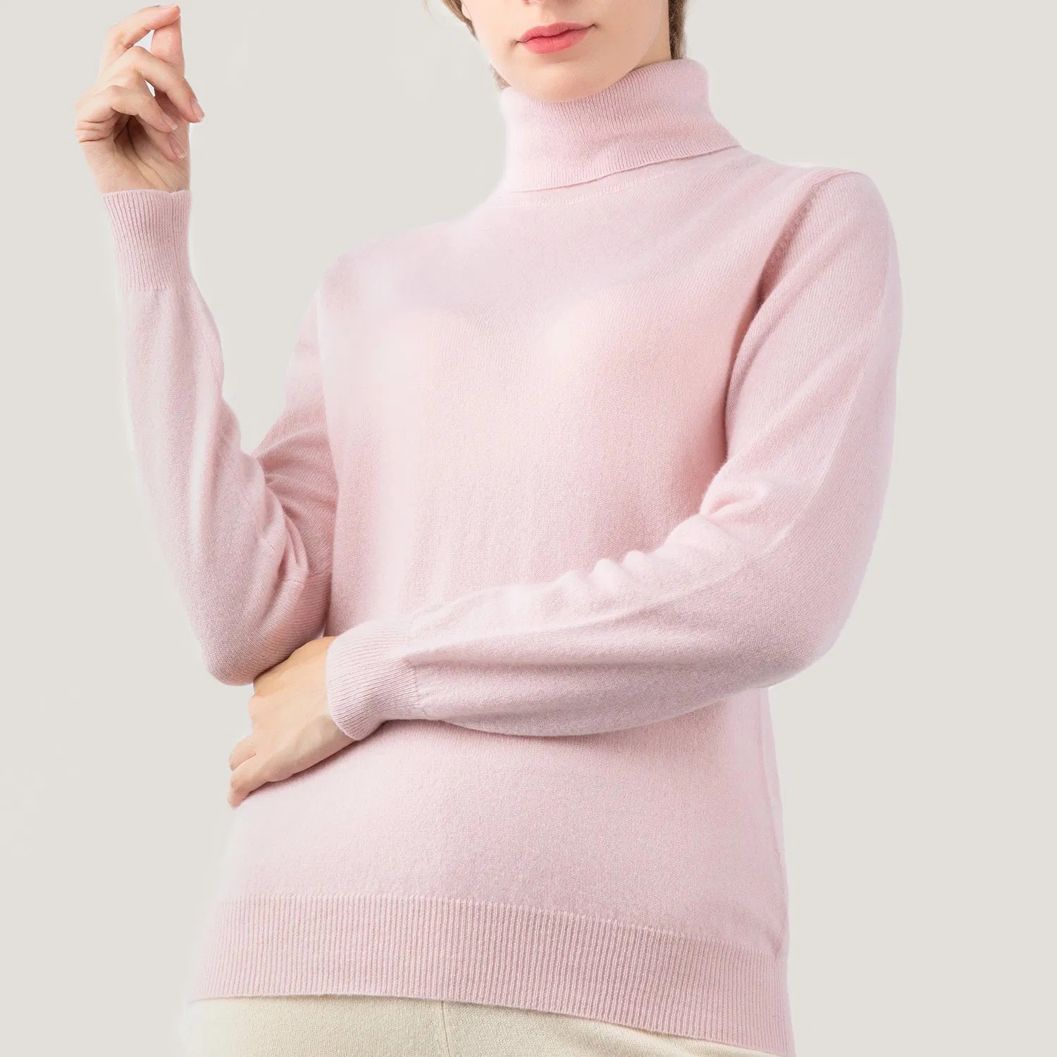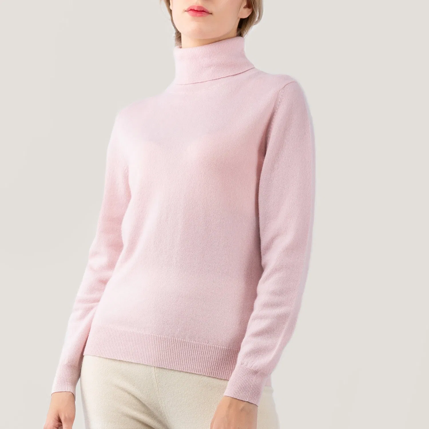 Ladies' Cashmere Pink Turtleneck Pullover Guage:12GGComposition: 100% Cashmere Size:XXS - XXXLColor:FlamingoPort:BEIJING/TIANJINPrice Terms: FOBPlain knit, turtleneck , long sleeve, made from Inner Mongolian cashmere. Size, color, labels etc customizable. Embroidery, special packing possible.