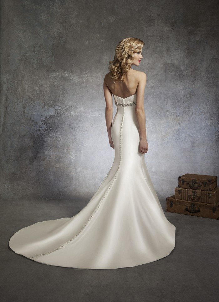 • Beading Sash Empire Bridal Gown Ivory Satin Wedding DressBeading Sash Empire Bridal Gown Ivory Satin Wedding Dress