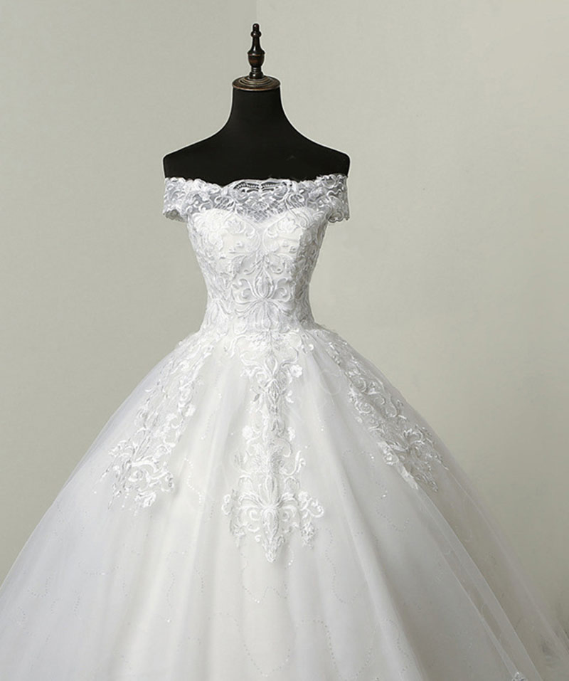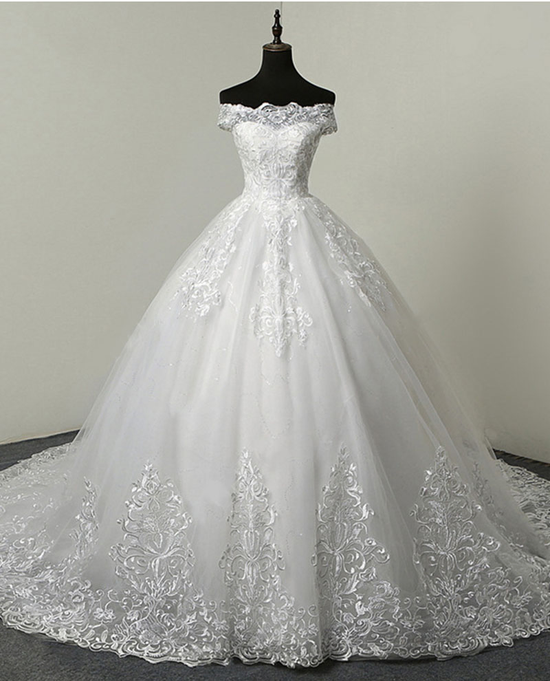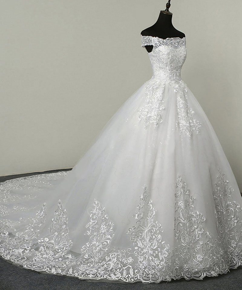 Luxurious Ivory White Hollowed-out Beaded Lace Mermaid Chapel Train Wedding Dress