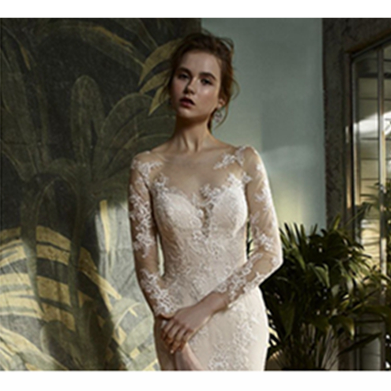 HWD037 Big Tailed New Wedding Dress Retro Sexy Tulle V-Neck Long Sleeve Wedding Dress Bridal
