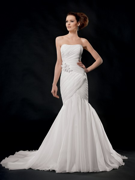 • White Organza Crepe Bridal Gown Vestidos in Stock Mermaid Wedding DressWhite Organza Crepe Bridal Gown Vestidos in Stock Mermaid Wedding Dress